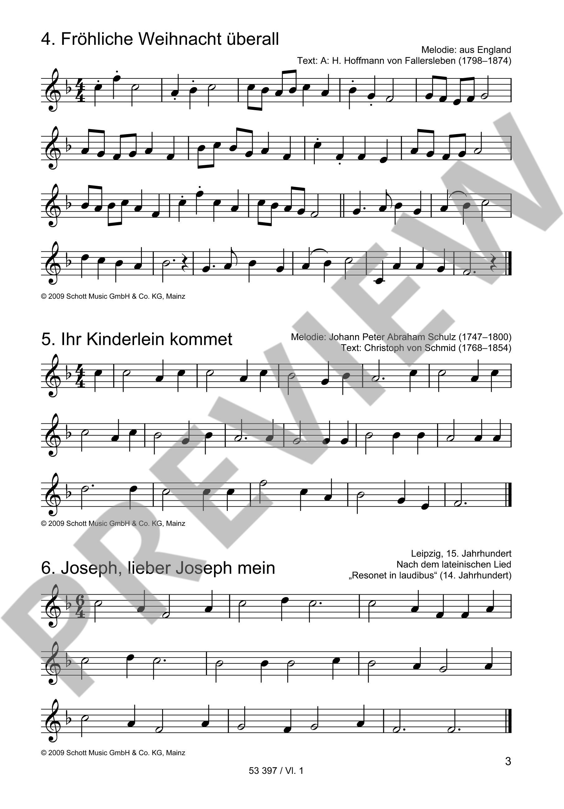 Zu keiner Jahreszeit wird zu Hause so viel musiziert wie in der Weihnachtszeit. Dieses Heft enthält die schönsten Weihnachtslieder von Alle Jahre wieder bis Was soll das bedeuten, in sehr leichten Bearbeitungen für zwei Violinen und Violoncello. Die Violoncellostimme kann wahlweise durch eine Viola ersetzt werden, diese Stimme ist separat erhältlich.