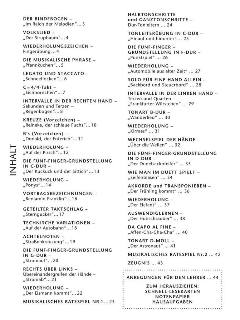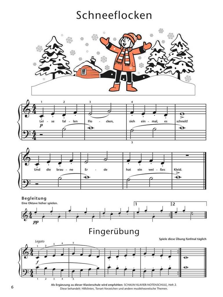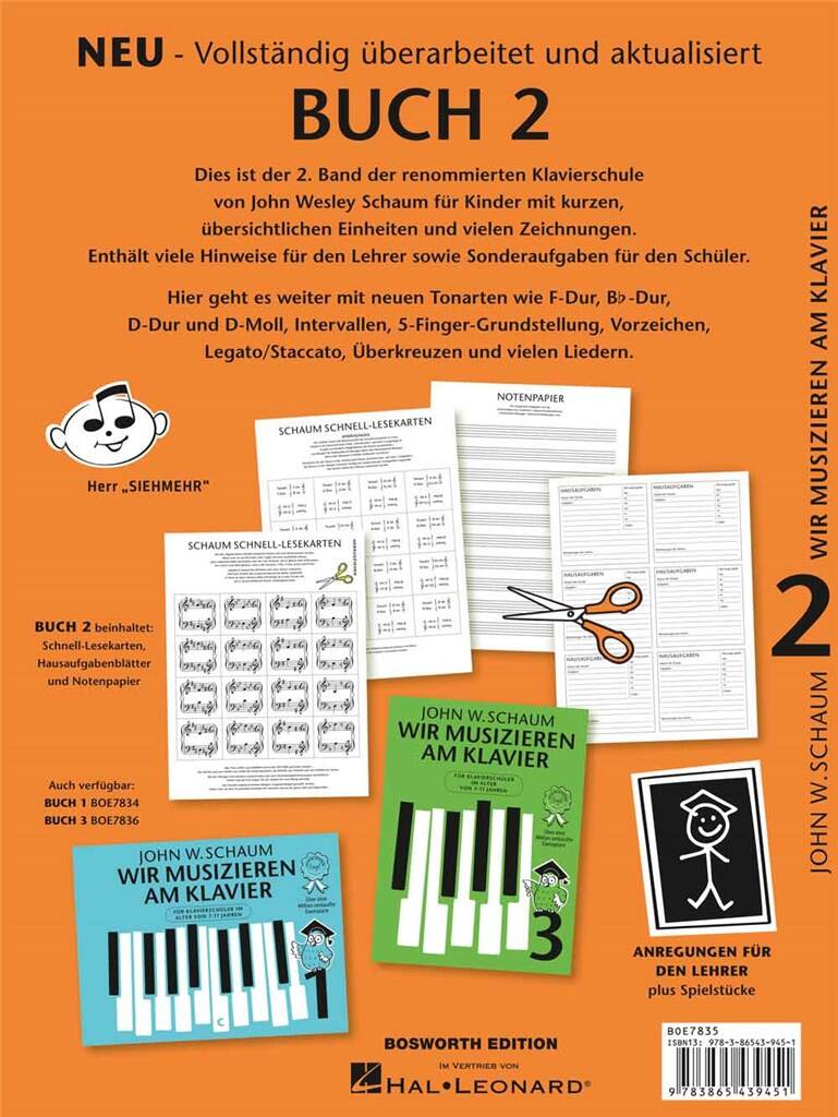 Die seit Jahrzehnten außerordentlich erfolgreiche Klavierschule von John Wesley Schaum liegt erstmals in einer vollständig überarbeiteten Neuauflage vor. Die Texte wurden an die neue Rechtschreibung angepasst, die Illustrationen modernisiert und jedem Band zur Wiedererkennung eine Farbe zugeordnet, die ihn vom schwarz-weißen Vorgänger abhebt. Die Methode überzeugt weiterhin mit der Übersichtlichkeit der Lehreinheiten, den ergänzenden Abbildungen, wertvollen Hinweisen für die Lehrerinnen und Lehrer sowie Sonderaufgaben für Schülerinnen und Schüler. Vor allemdurch die kurz gehaltenen Übungen und einfachen Melodien zu Beginn kommen die jungen Klavierspieler schnell zu den ersten Lernerfolgen und die Motivation zum Weitermachen wird natürlich gesteigert. Für Klavierschüler im Alter von 7 – 11 Jahren. Der zweite Teil führt neue Tonarten (F-Dur, Bb-Dur, D-Dur und d-Moll), Intervalle, die 5-Finger-Grundstellung, Vorzeichen, Legato/Stakkato sowie das Überkreuzen ein und enthält zudem viele Lieder zum Nachspielen.